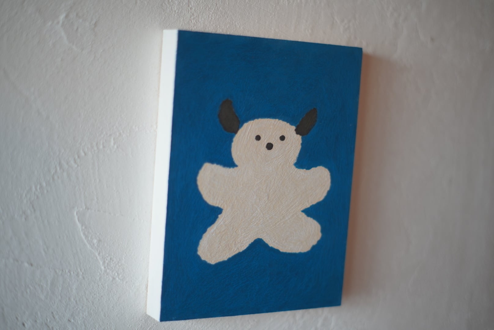 木製パネルに描かれた 福岡 麻利子さんのアナログ原画