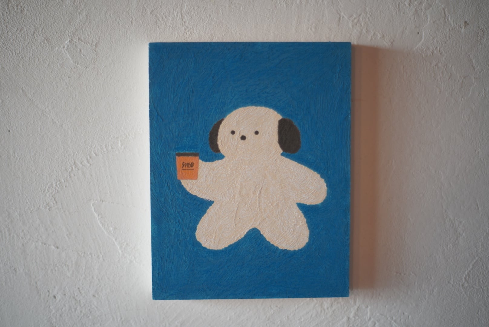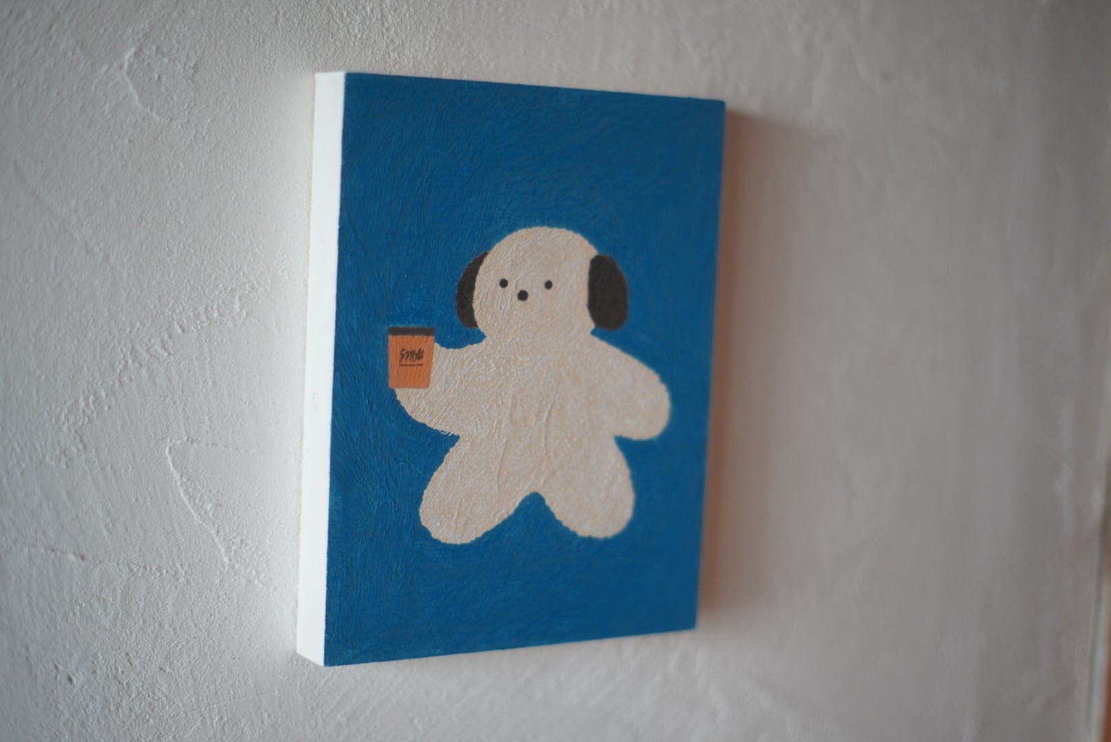 木製パネルに描かれた 福岡 麻利子さんのアナログ原画