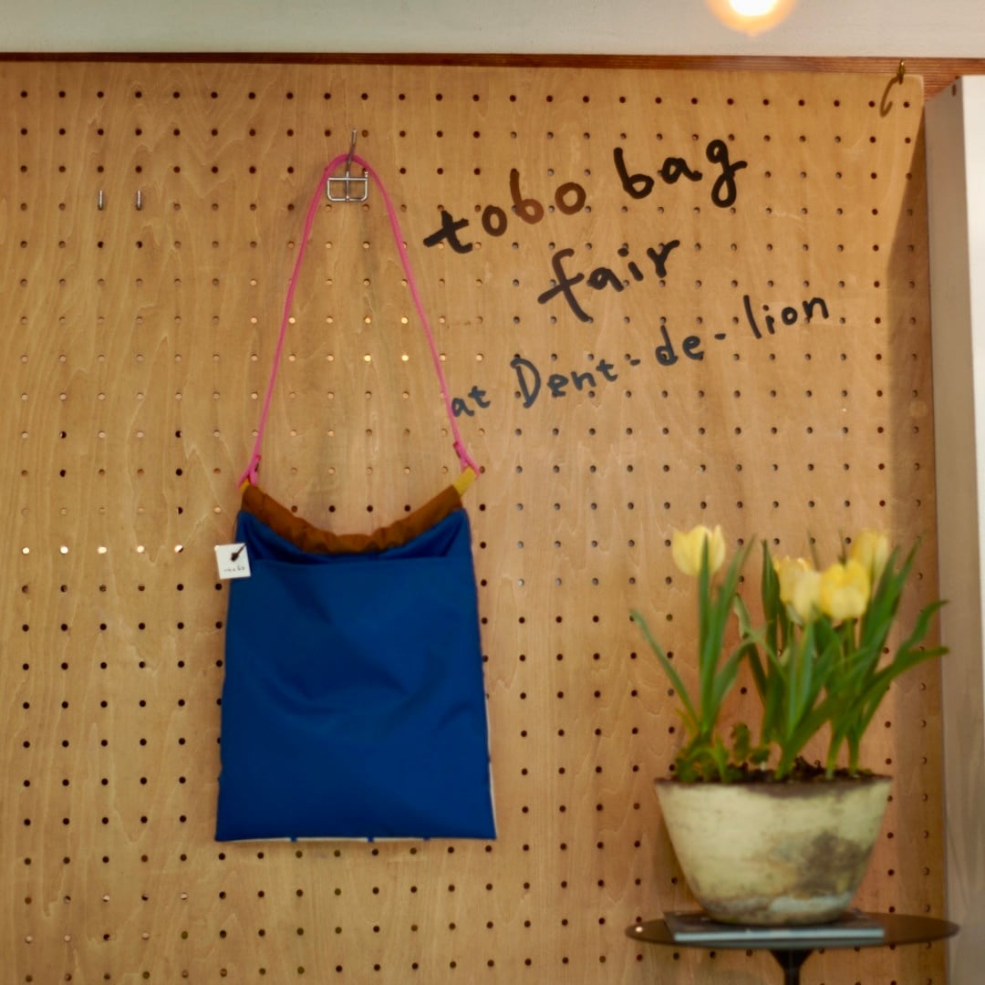 今回のtobo bag fairに是非作っていただきたい!と私からリクエストさせていただきましたバックです。Dent-de-lionには、初めて並ぶ形です。巾着のようなデザインでショルダーで持つととっても可愛くて〜。ふらりとどこかお散歩に行きたくなる、そんな軽やかな気持ちになるバックです。