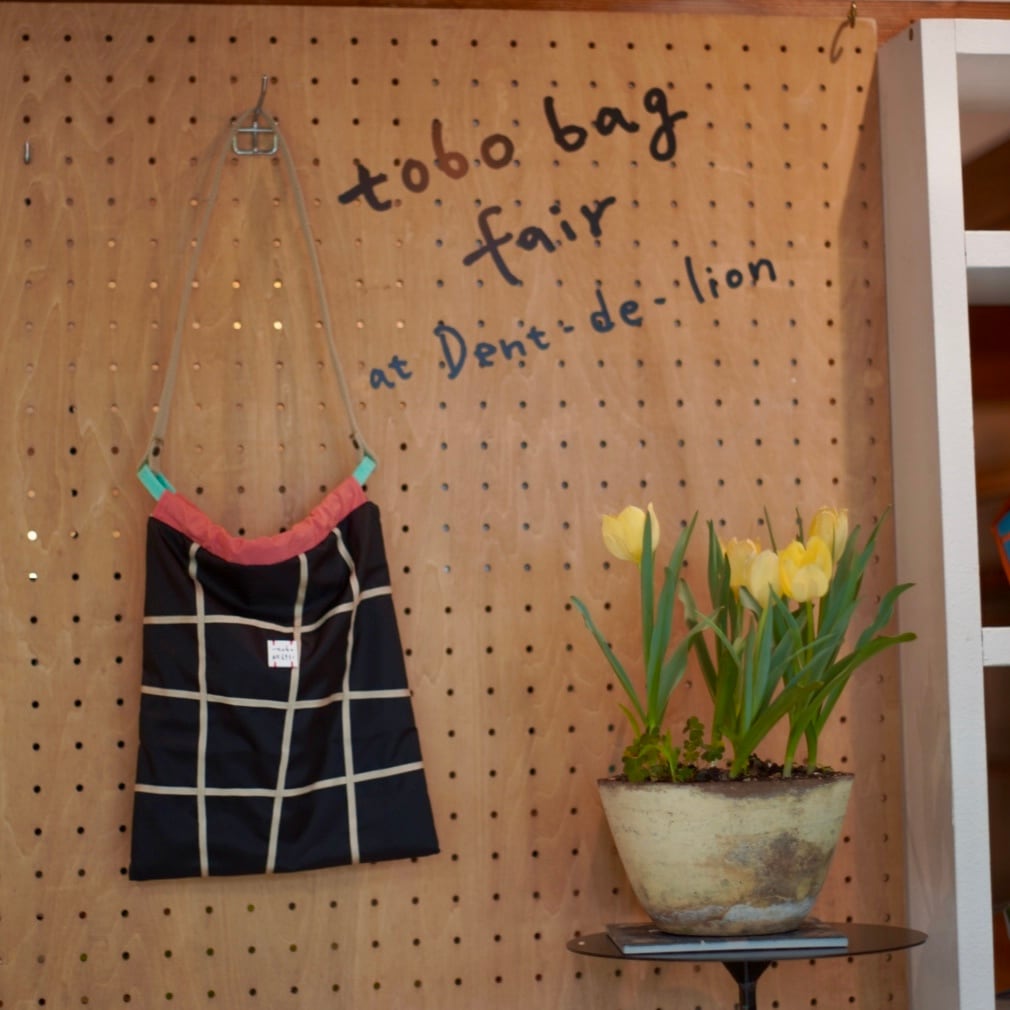 今回のtobo bag fairに是非作っていただきたい!と私からリクエストさせていただきましたバックです。Dent-de-lionには、初めて並ぶ形です。巾着のようなデザインでショルダーで持つととっても可愛くて〜。ふらりとどこかお散歩に行きたくなる、そんな軽やかな気持ちになるバックです。