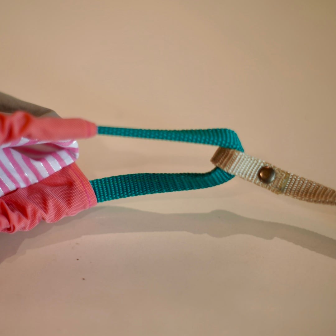 持ち手の長さ60~68cm(巾着のように中の荷物の重みで持ち手の長さがすこし変わります。)