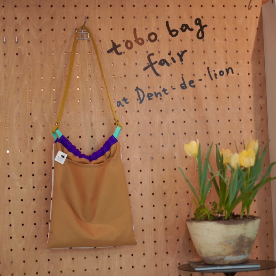 今回のtobo bag fairに是非作っていただきたい!と私からリクエストさせていただきましたバックです。Dent-de-lionには、初めて並ぶ形です。巾着のようなデザインでショルダーで持つととっても可愛くて〜。ふらりとどこかお散歩に行きたくなる、そんな軽やかな気持ちになるバックです。
