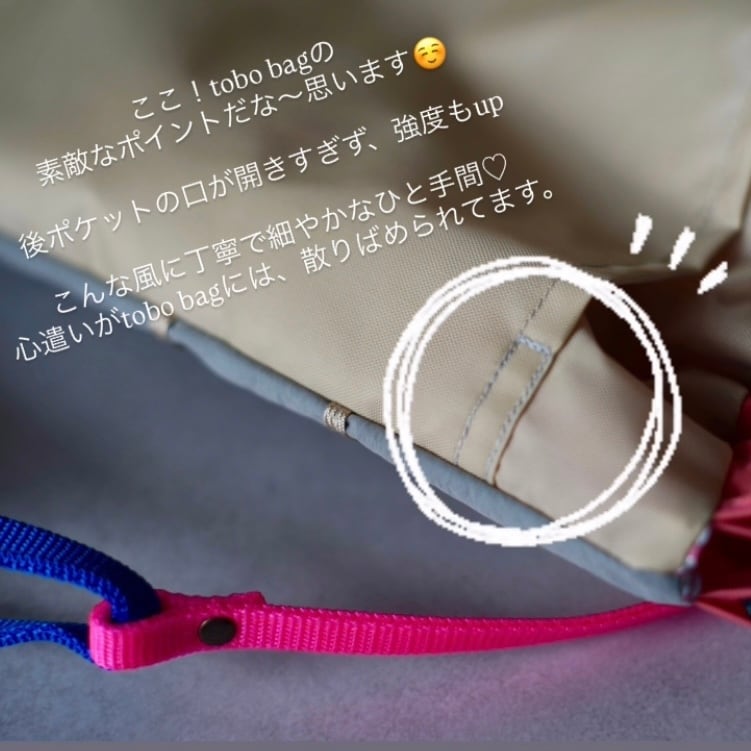 持ち手の長さ60~68cm(巾着のように中の荷物の重みで持ち手の長さがすこし変わります。)