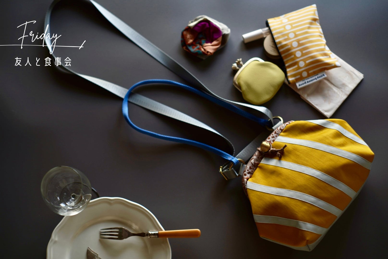 コンパクトサイズで、ショルダー、斜めがけ、クラッチバック、3wayになる可愛いガマ口、カジュアルなデニムスタイルにもお出かけのワンピースなどにも似合います!